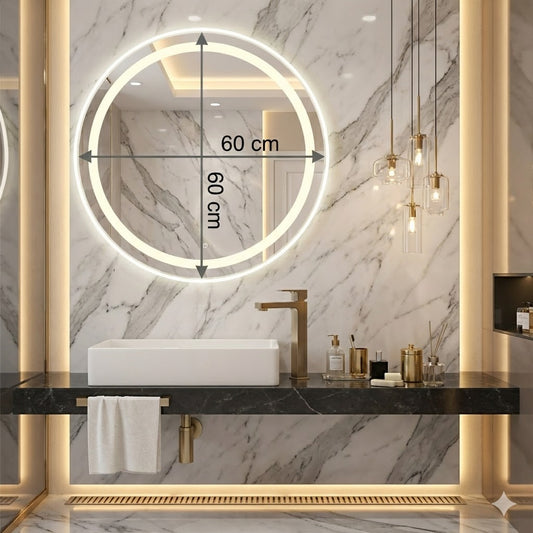 Dale un toque sofisticado y moderno a tu baño con este hermoso espejo circular de 60x60 cm con acabado arenado. Su diseño minimalista y tecnología LED de última generación lo convierten en la pieza perfecta para cualquier espacio.